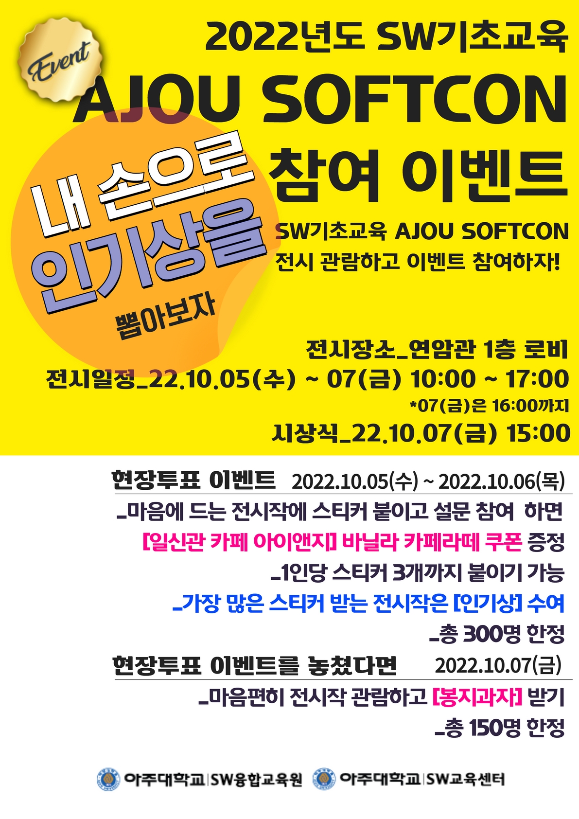 [SW융합교육원/SW중심대학]2022학년도 SW기초교육 AJOU SOFTCON 개최(2022.10.05 ~ 2022.10.07)