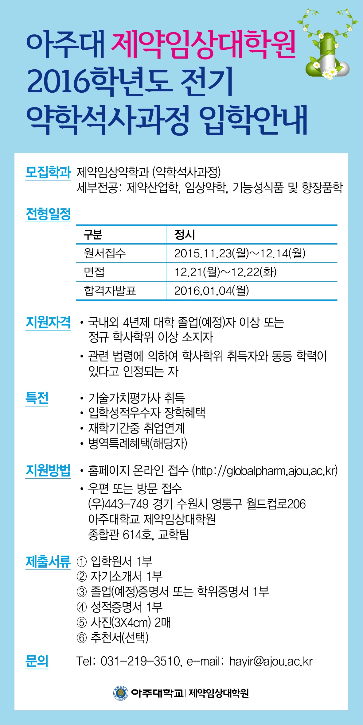 [제약임상대학원] 2016학년도 전기 입학 안내