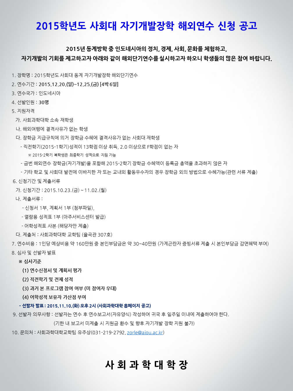 | 1026 | 장학 | 사회과학대학교학팀 | 2015-10-23 | ||