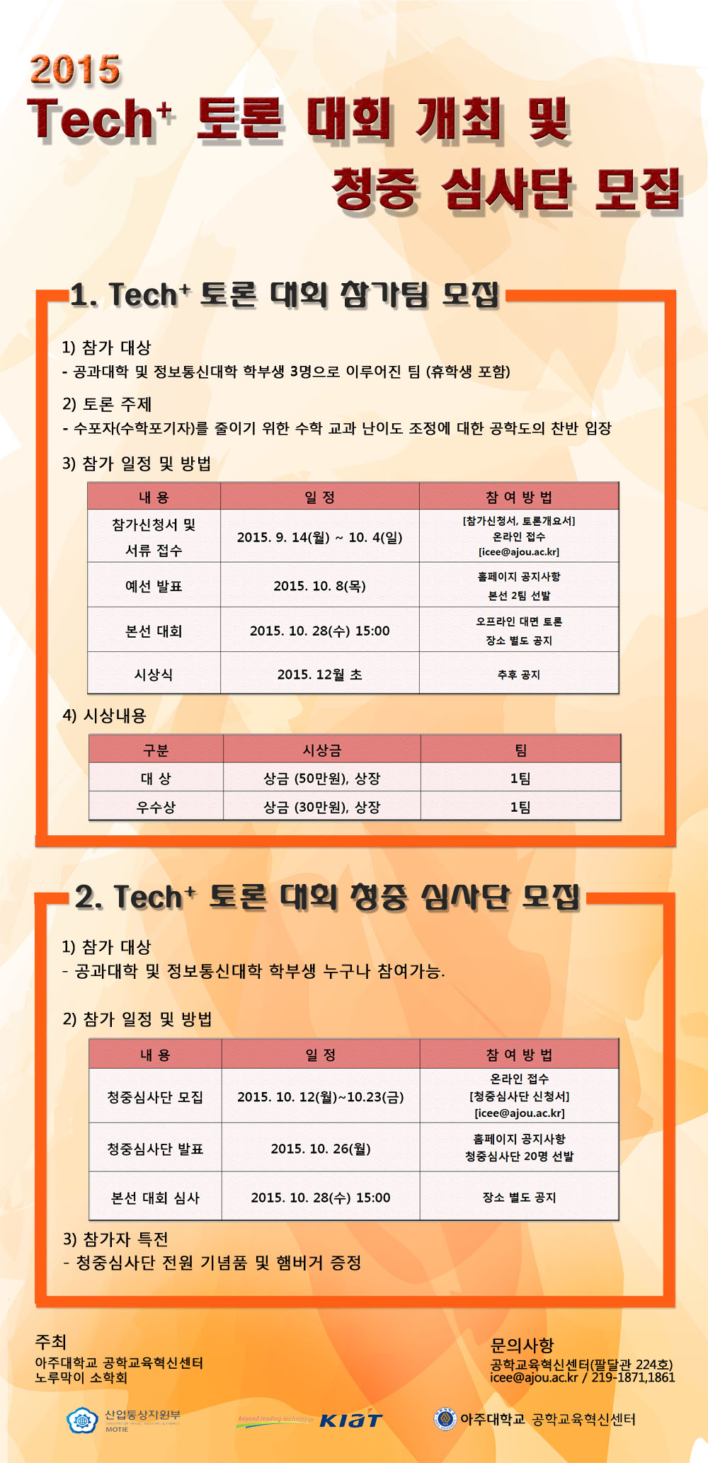2015 Tech+ 토론 대회 개최 안내 (참가신청,청중심사단모집)
