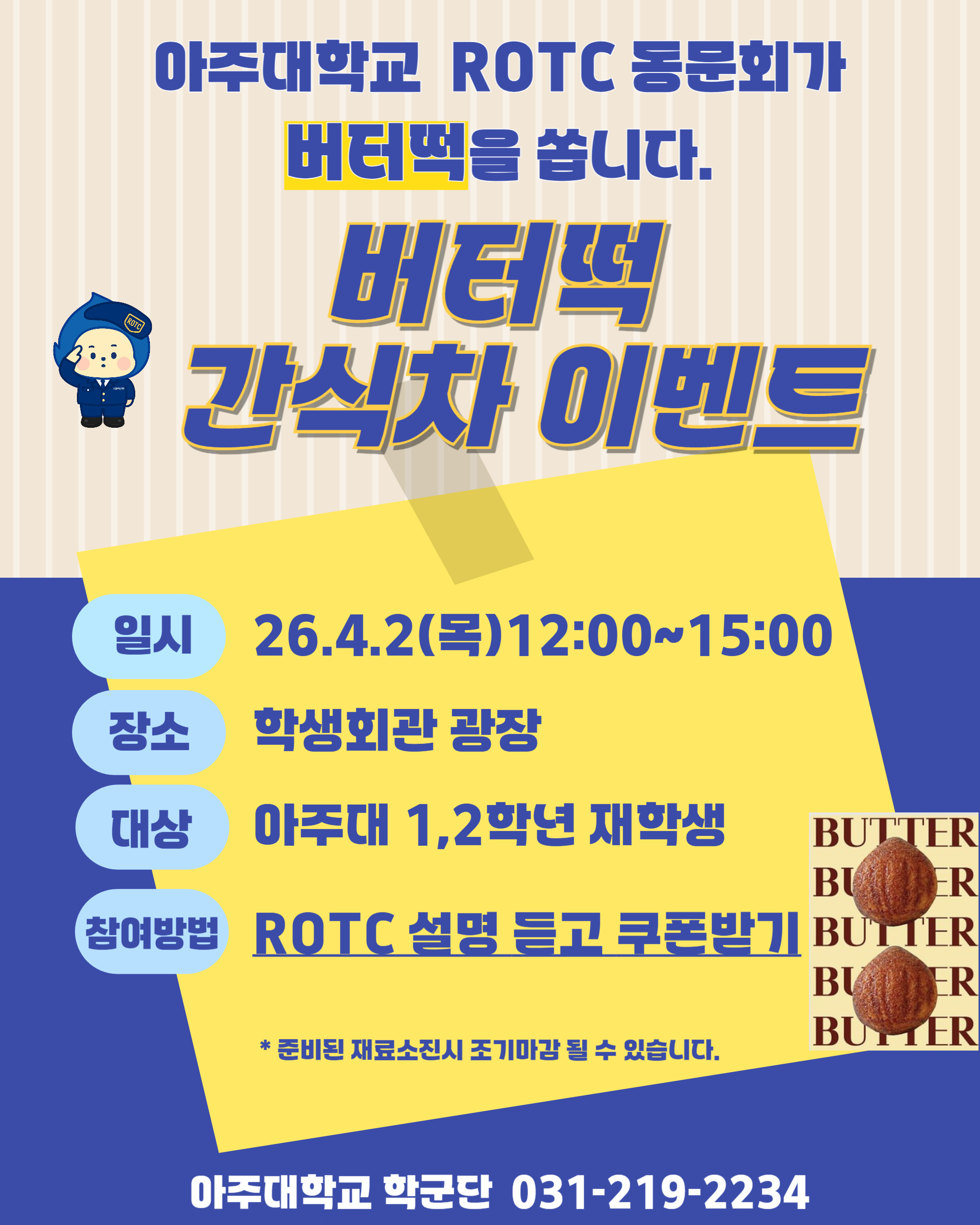 [행사] [학군단]26년 모집홍보 버터떡 이벤트(4.2 목 12:00~